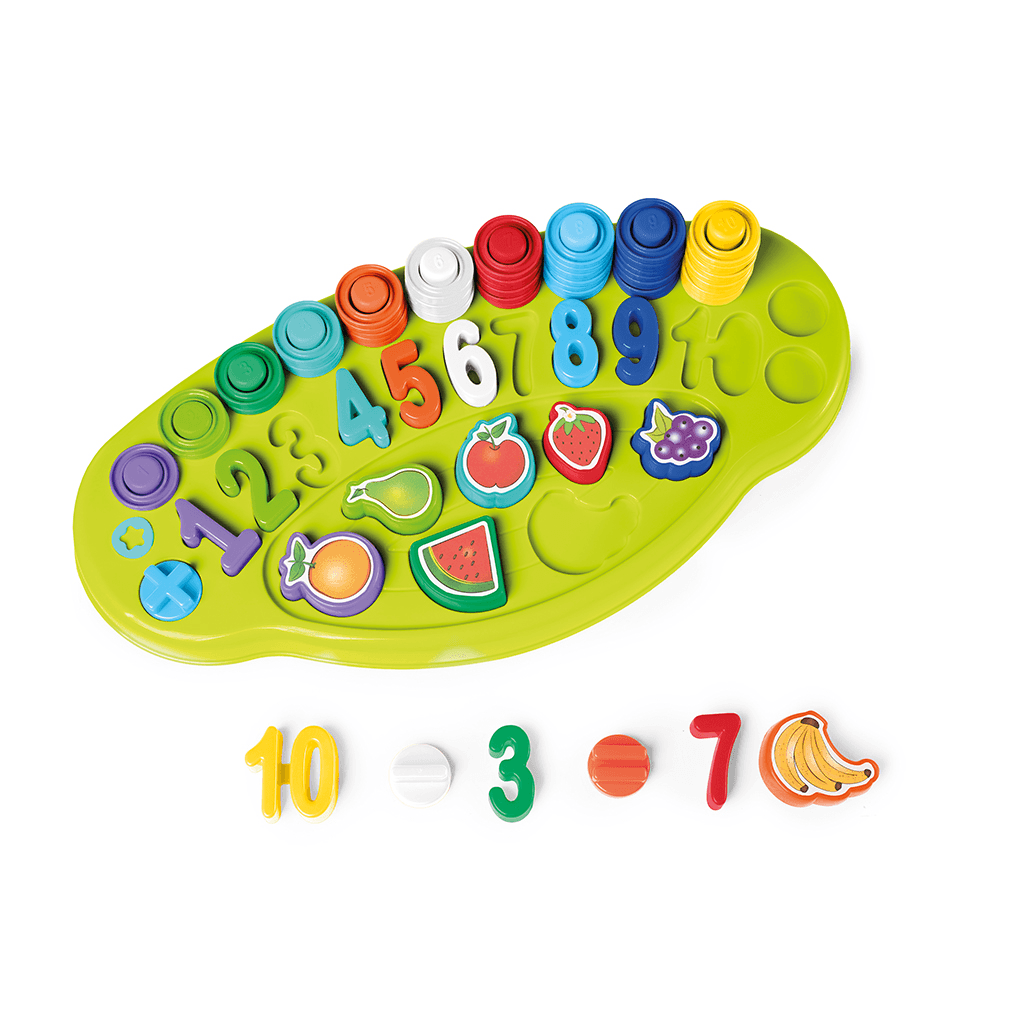 -Brinquedo educativo; -Desenvolve habilidades tais como: Atenção e concentração, Conhecimento geral, Coordenação motora fina (mãos e dedos), Expressão e comunicação, Habilidades sensoriais; -Contém 01 base, 10 Formas de números, 3 Símbolos numéricos, 55 Argolas, 10 pinos; -Brinquedo indicado para crianças maiores de 3 anos.
